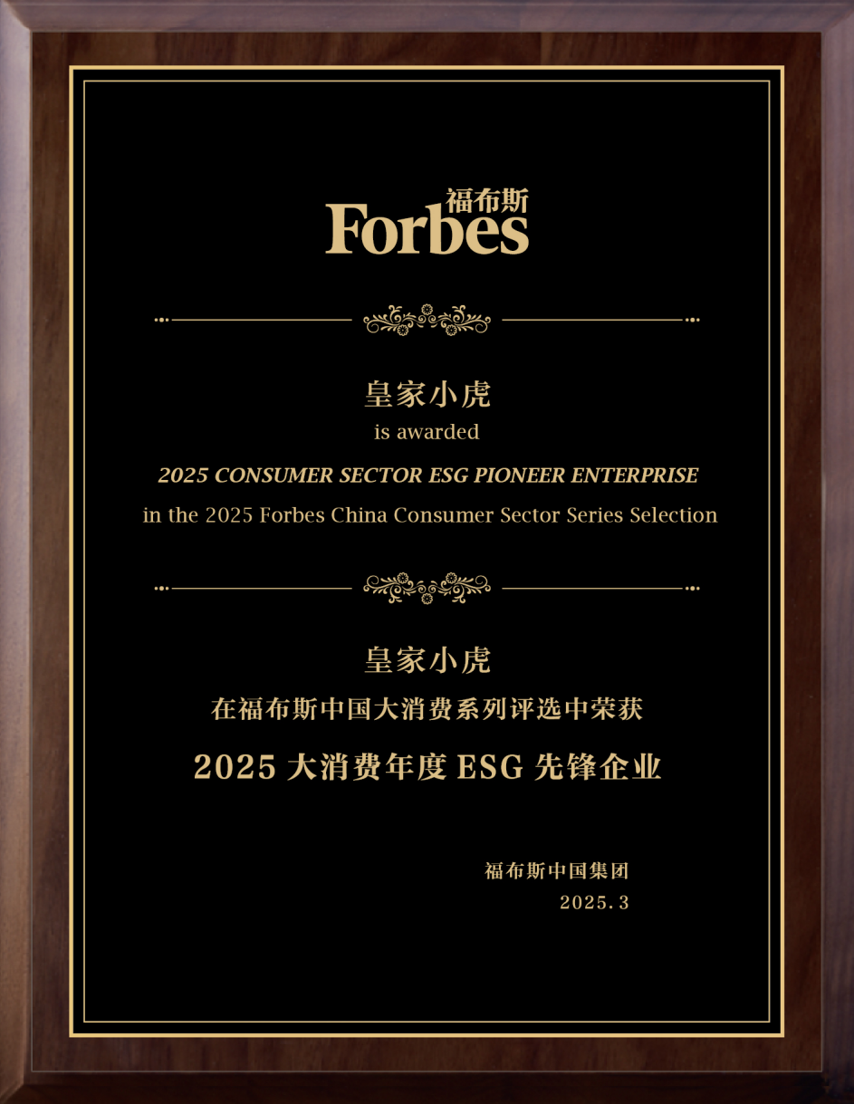 本次獎(jiǎng)項(xiàng)并不是皇家小虎在ESG治理領(lǐng)域首次斬獲大獎(jiǎng),在2024年12月,皇家小虎榮獲沙利文頒發(fā)的“最具影響力品牌-引領(lǐng)行業(yè)ESG環(huán)保節(jié)能杰出獎(jiǎng)”;2025年3月,皇家小虎在福布斯中國(guó)大消費(fèi)系列評(píng)選中榮獲2025大消費(fèi)年度ESG先鋒企業(yè)。這些行業(yè)機(jī)構(gòu)的獎(jiǎng)項(xiàng),從更加社會(huì)與公眾的企業(yè)ESG實(shí)踐角度,全面地評(píng)價(jià)了一家公司在經(jīng)營(yíng)業(yè)務(wù)之外,對(duì)應(yīng)該承擔(dān)的社會(huì)責(zé)任與環(huán)保責(zé)任的履責(zé)表現(xiàn)。行業(yè)機(jī)構(gòu)及合作伙伴的對(duì)于皇家小虎的多次ESG表彰與獎(jiǎng)項(xiàng),是對(duì)皇家小虎在工廠生產(chǎn)、配送履約等各個(gè)環(huán)節(jié)在ESG方面持續(xù)實(shí)踐的認(rèn)可與贊賞。