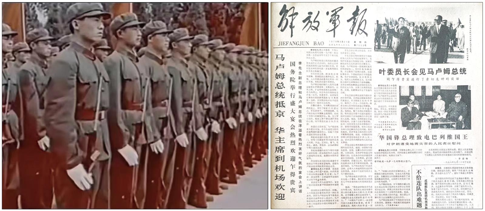 新兵下連后,經(jīng)過嚴(yán)苛選拔和刻苦的專業(yè)訓(xùn)練,1978年9月21日,王永迎來了軍旅生涯中首次重大迎外任務(wù) —— 迎接非洲乍得共和國(guó)總統(tǒng)馬盧姆訪華。他第一次親眼見到了傳說中象征國(guó)賓待遇的 “紅旗牌” 高級(jí)轎車緩緩駛來,第一次近距離目睹國(guó)家最高領(lǐng)導(dǎo)人的風(fēng)采,第一次直面外國(guó)首腦。第一次參與這個(gè)如此莊重的禮儀場(chǎng)景,第一次面對(duì)如此陣容的新聞?dòng)浾吒鞣N長(zhǎng)槍短炮”咔嚓、咔嚓“的各種拍攝。一連串的 “第一次”,此時(shí)讓他激動(dòng)得難以自已,心臟在胸腔中激烈地跳動(dòng)。腦海中竟一片空白,機(jī)械的按著首長(zhǎng)發(fā)出的口令做出各種禮儀動(dòng)作。剎那間,仿佛所有思緒都在這震撼的場(chǎng)景下暫時(shí)定格。