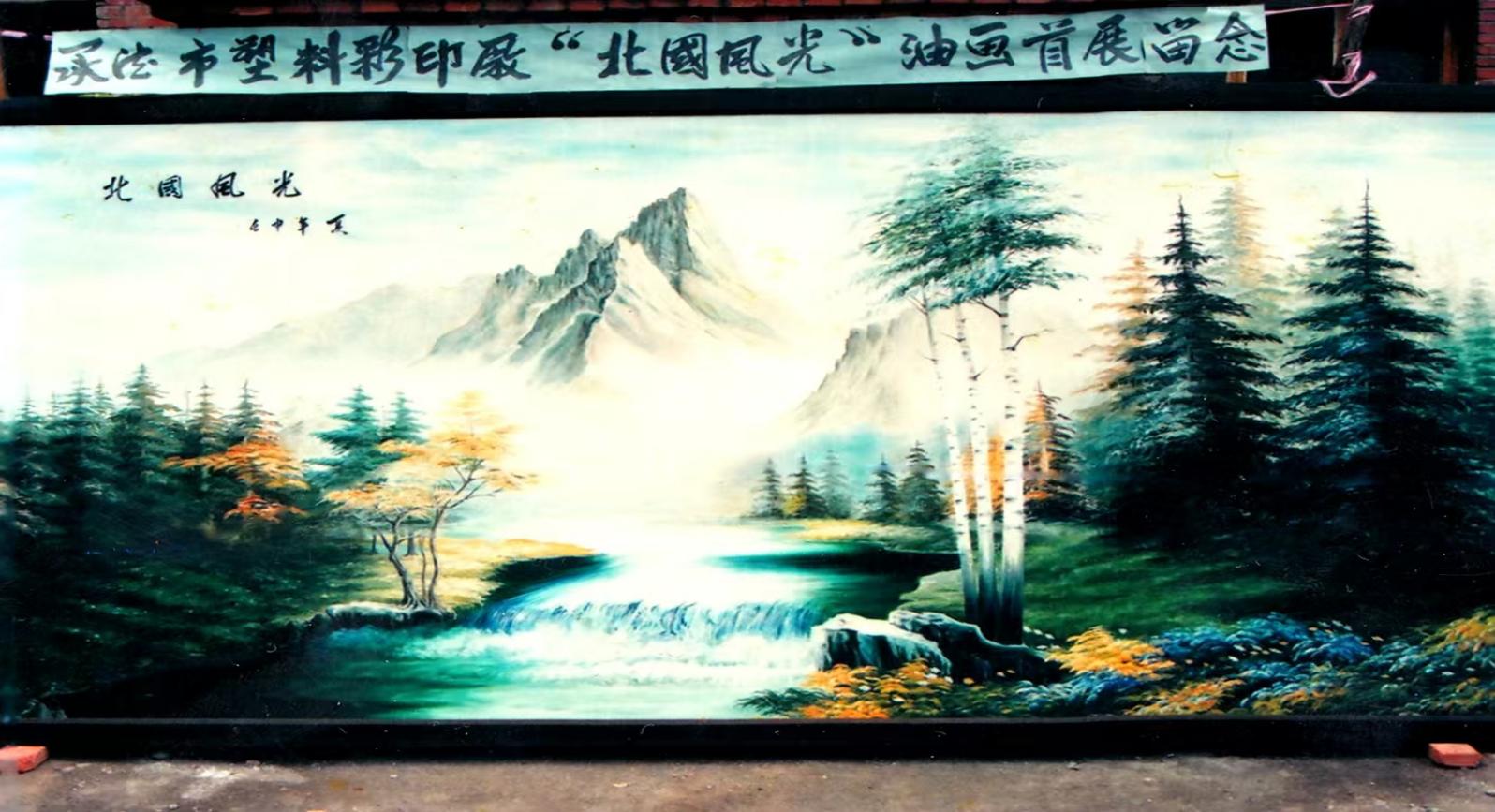 5;王永老師早期創(chuàng)作的油畫參展作品“北國(guó)風(fēng)光”。長(zhǎng)6米X高2.5米