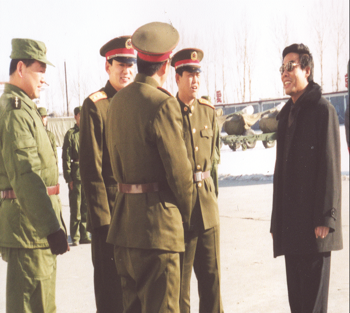 15;王永(右一)回訪曾經(jīng)服役的北京衛(wèi)戍區(qū)某部,在政治處郝國(guó)斌少校陪同下在訓(xùn)練場(chǎng)看望官兵。